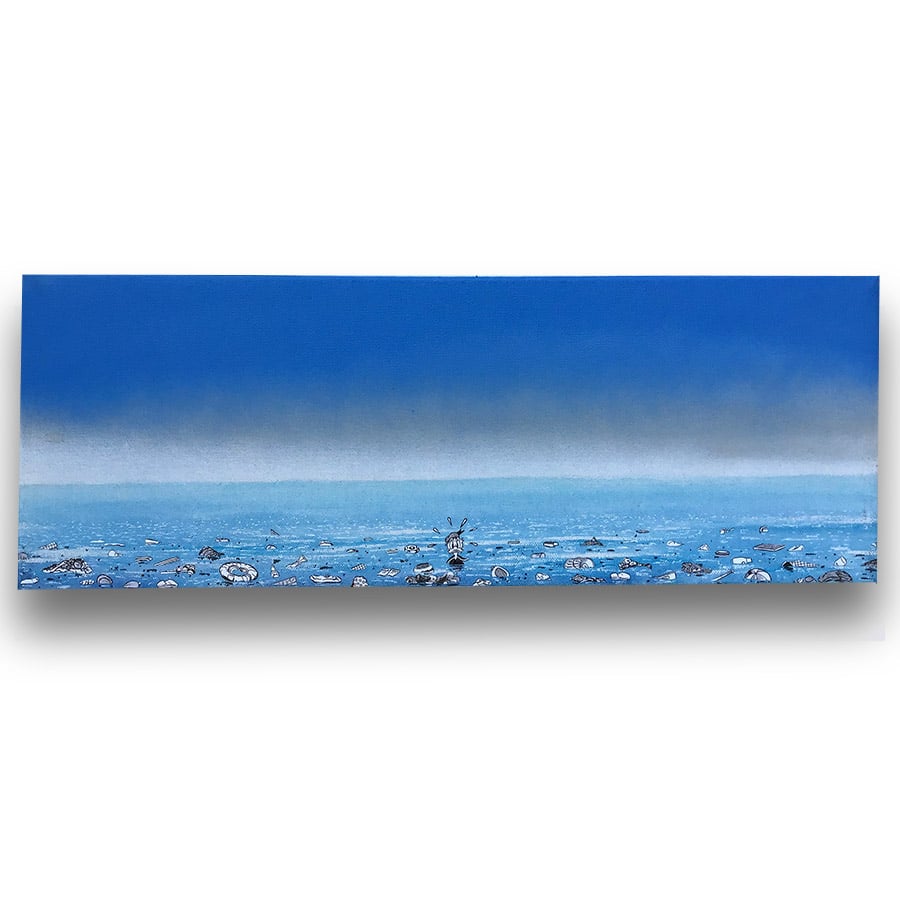 Acrylic, Spray Paint, Collage on 7.5" x 20" x 1.55" Canvas